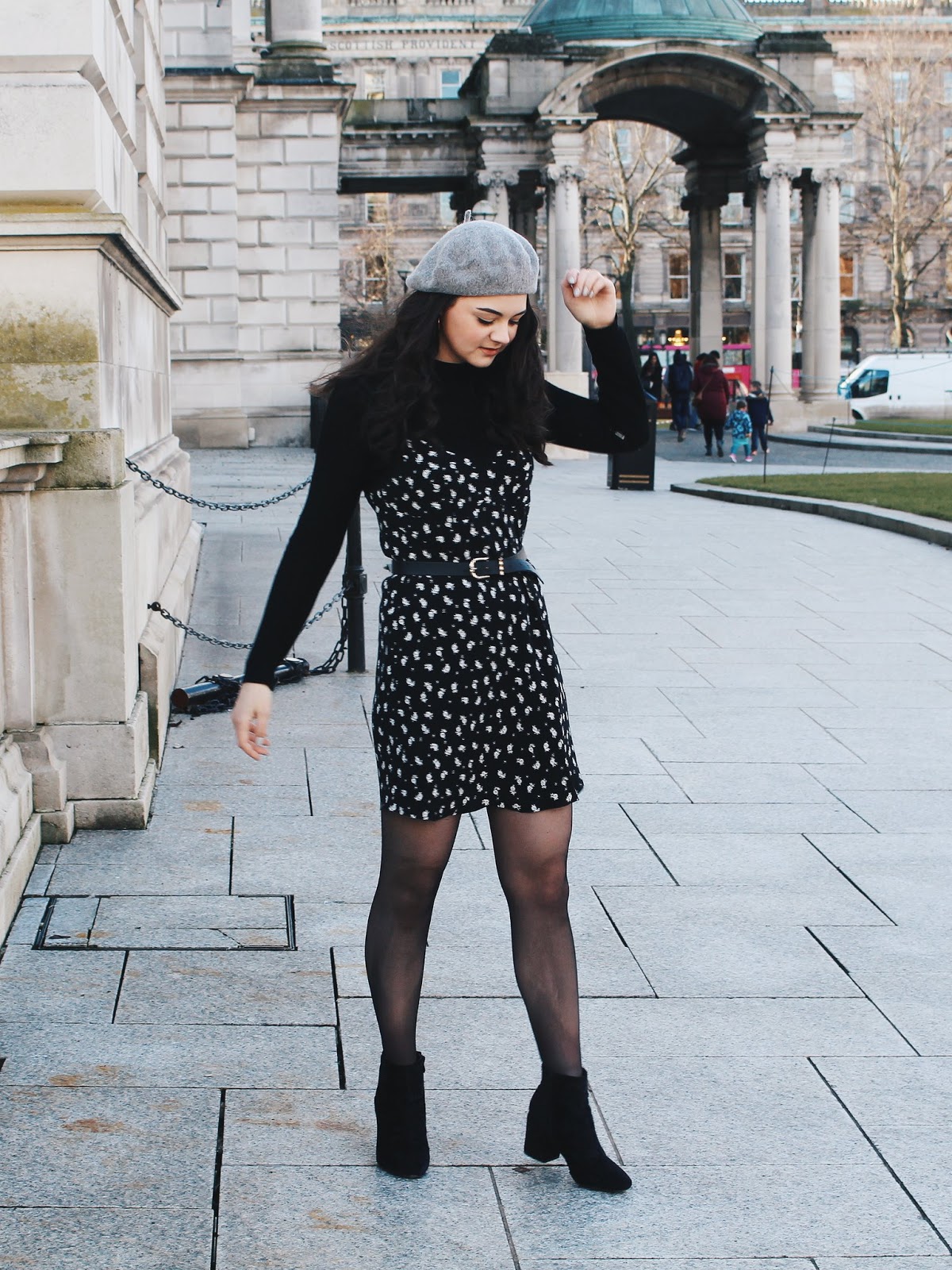 A colourful jumper or beret would be gorgeous with this outfit too but honestly, anything layered with a black turtle neck jumper is a win for me and with this particular dress I think it creates the perfect mix of an edgy, yet feminine Parisienne look.